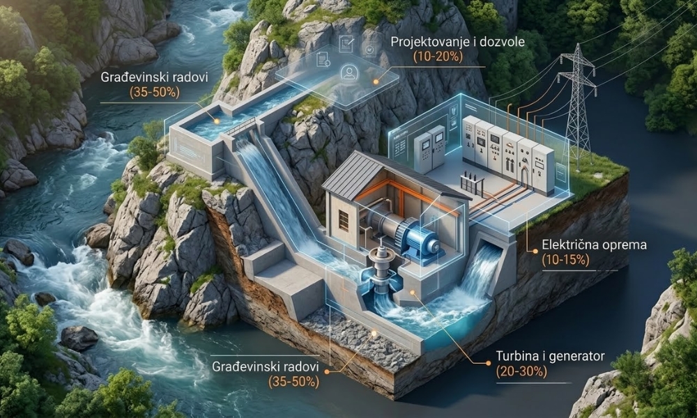 U nastavku ćemo detaljno objasniti koliki su troškovi izgradnje hidroelektrane, koliko energije mala elektrana može proizvesti i koliko je realan povrat investicije hidroelektrana u domaćim uslovima.